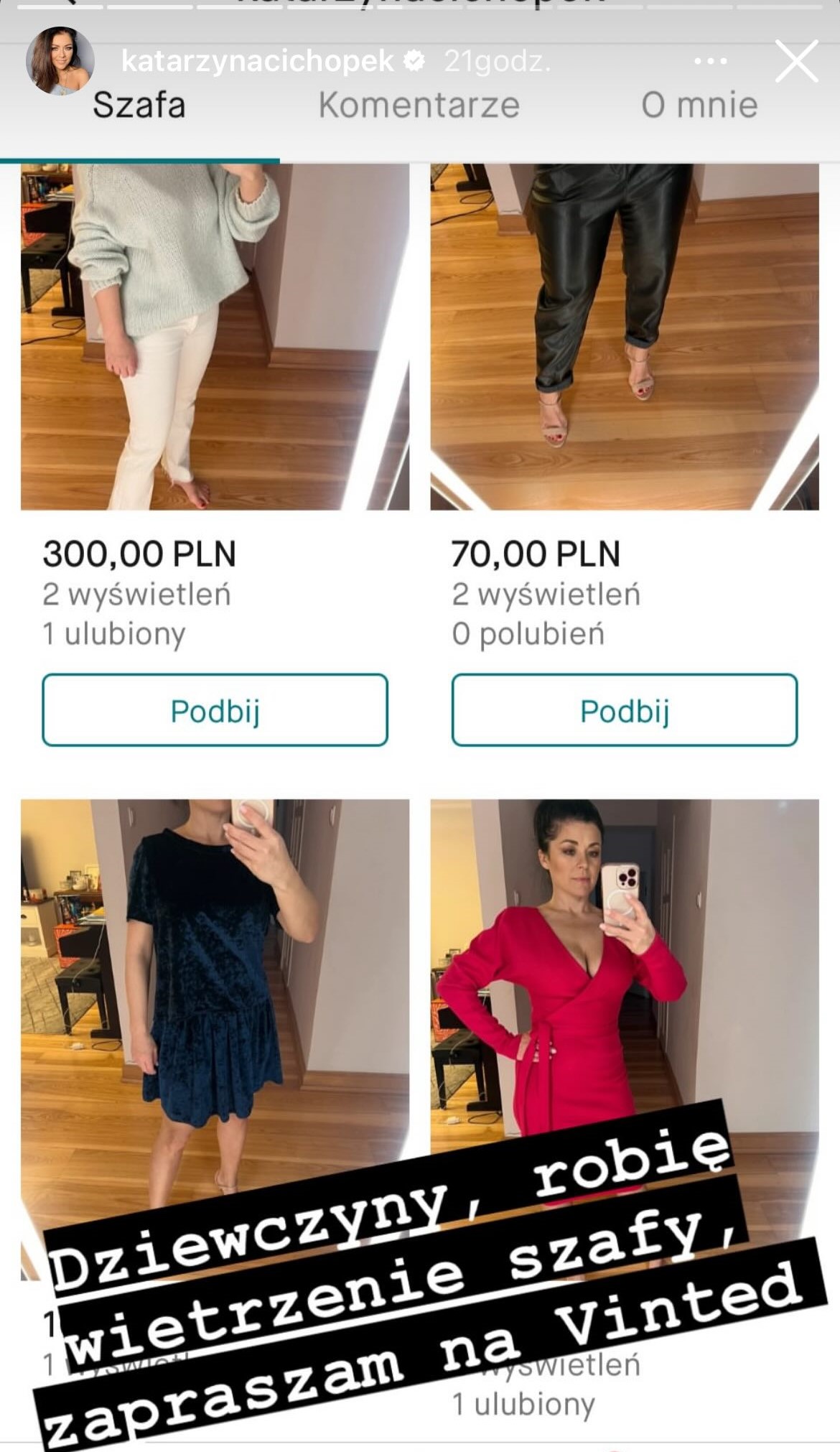 Na Instagramie poinformowała o wystawieniu ubrań na popularnym serwisie Vinted, który jest przeznaczonym do sprzedaży i wymiany garderoby.