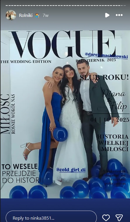 To właśnie Natalia ujawniła, że Diana jest już po ślubie! Z relacji zamieszczanych przez nią na Instagramie wynika, że ślub Diany i jej partnera – Filipa – odbył się 4 października br. Wśród gości weselnych znalazł się – także znany z „RszŻ” – Dariusz.