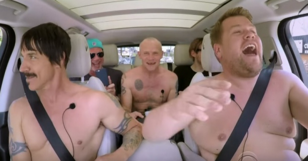 Gołe klaty, zapasy w ogródku i największe hity: Red Hot Chili Peppers w Carpool Karaoke!